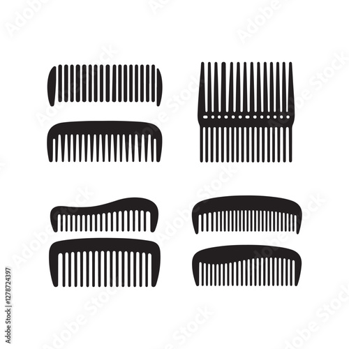 Black and white, hair combs, grooming tools, variety of comb styles, minimalist design