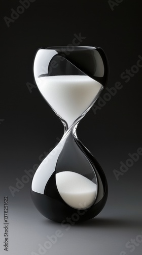 Black and white hourglass measuring time on deep black background