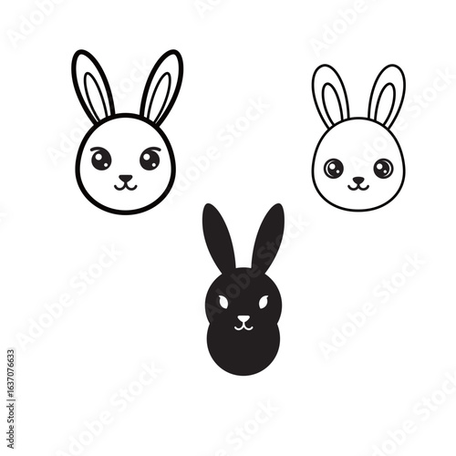 Black and white icon cute vector illustration of a rabbit. vector simple. no colour