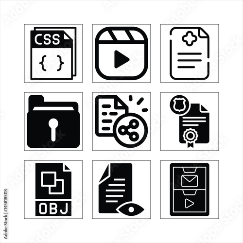 Black And White Icon Set Representing Documents Files And Folders In Vector Format