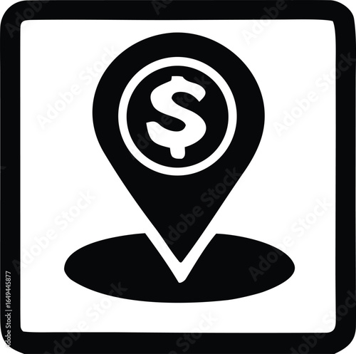 Black and white icon symbolizing a financial location or a place to find money and economic opportunities
