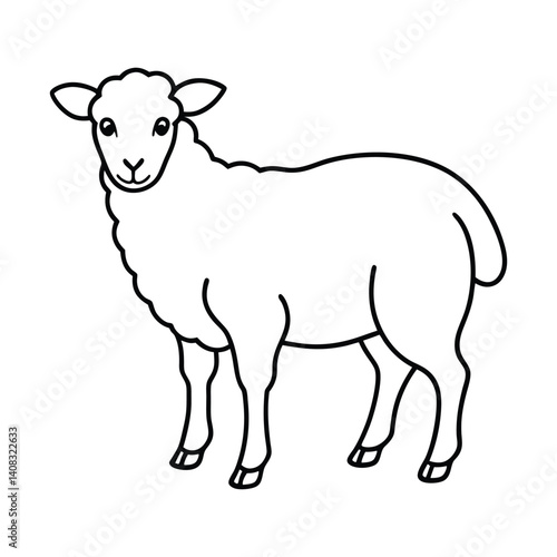 Black and White Illustration of a Cartoon Sheep in Outline Style