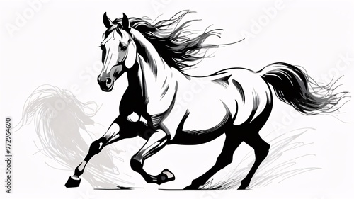 Black and white illustration of a horse running.