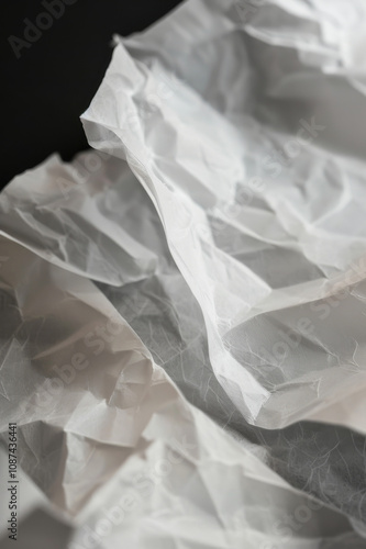 Black and white image of crumpled paper with dynamic textures and sharp folds.