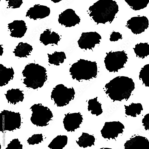 Black and White Ink Paint Seamless Dry Brush Print Vector Abstract Pattern