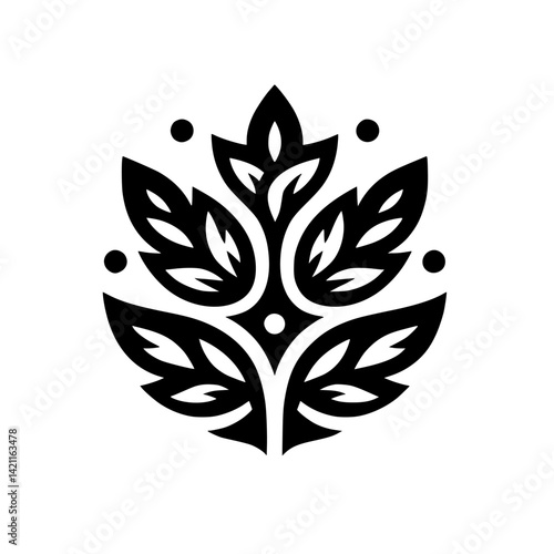 Black and White Leafy Floral Design Element
