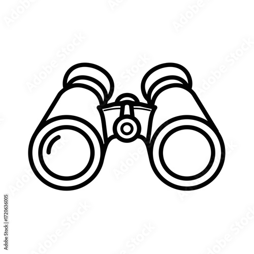 Black and White Line Art Binoculars with Detailed Lens and Design.