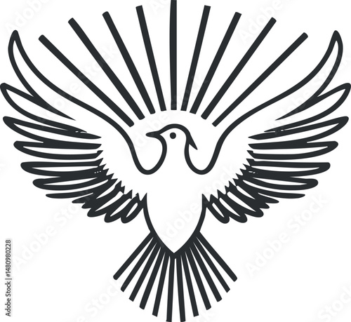 Black and white line art illustration of a dove with spread wings symbolizing peace and freedom