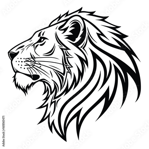 Black and white lion head illustration side view wild animal wildlife strong powerful majestic design vector art