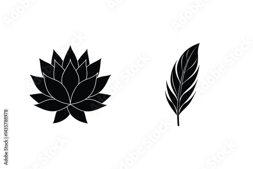 Black And White Lotus Flower And Feather Illustration Elegant Design Elements