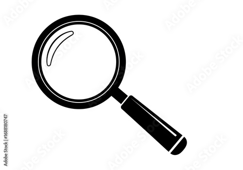 Black and white magnifying glass isolated on white background