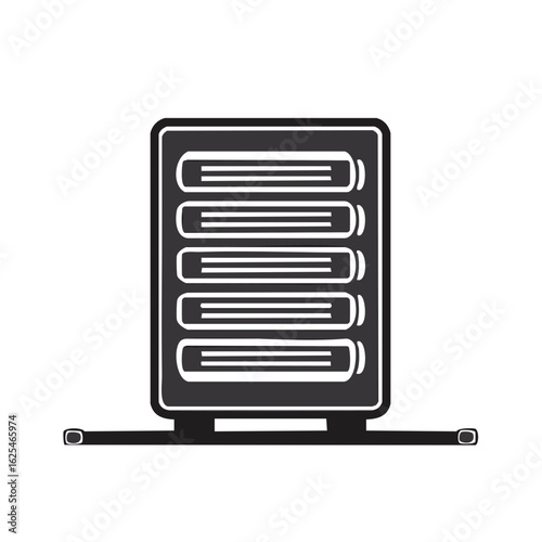 Black and white modern IT server rack cabinet technology icon illustration