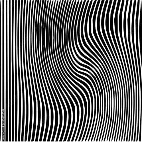 Black and white optical illusion with vertical lines that appear to be distorted and warped design effect