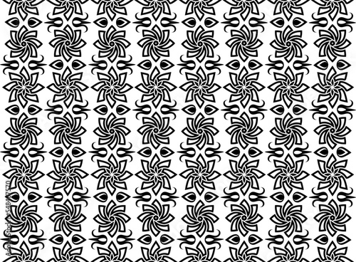 Black and white oriental pattern. Seamless repeating floral elements, background with Arabic ornament.