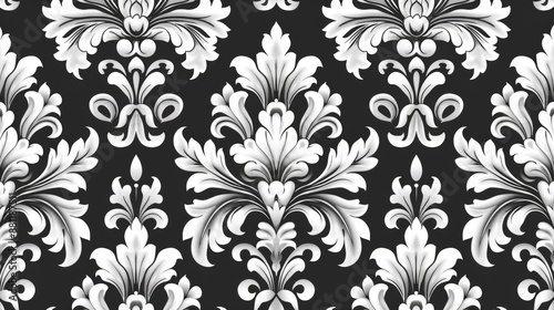 Black and white ornate floral pattern. Decorative wallpaper design for interior