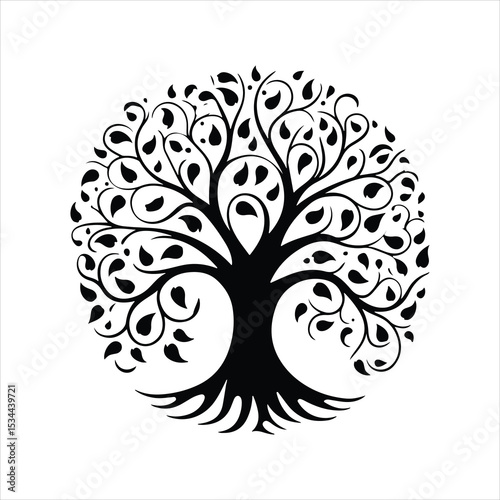Black and White Ornate Tree of Life Circular Design Abstract Floral Illustration vector