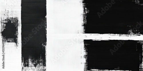Black and white painted abstract shapes and lines composition