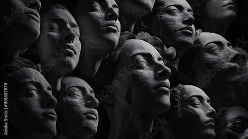 Black and White Representation of Human Features, Showcasing Elegance and Emotional Intensity