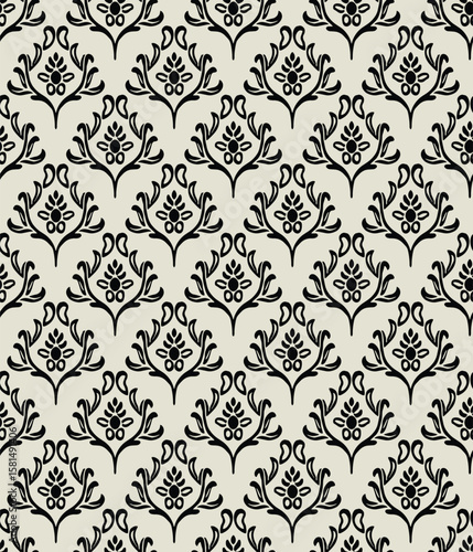 Black And White Seamless Damask Pattern, Elegant And Classic, Ideal For Wallpaper, Fabric, Or Digital Backgrounds.