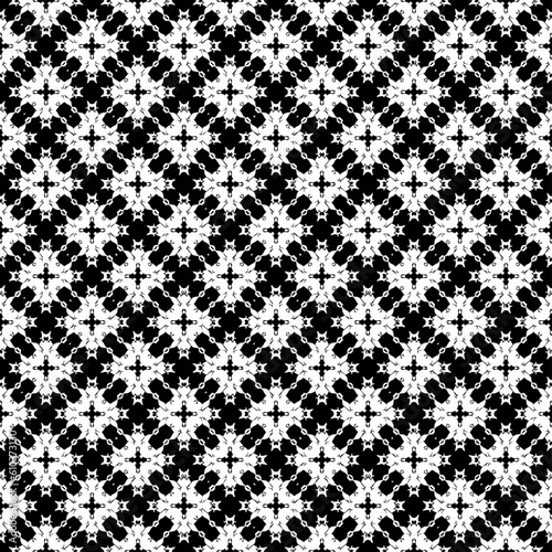 Black and white seamless pattern texture. Greyscale ornamental graphic design. Mosaic ornaments. Pattern template. Vector illustration. EPS10.