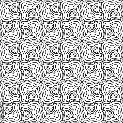 black and white seamless pattern with abstract wavy lines, vector seamless tile