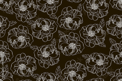 Black and white seamless pattern with beautiful ranunculus and meadow flowers. Cute elegant floral background for home textiles, interiors, linens, cotton fabric, scrap book.