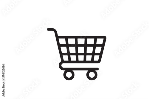 Black and White Shopping Cart Icon, Simple and Minimalistic Shopping Cart Design