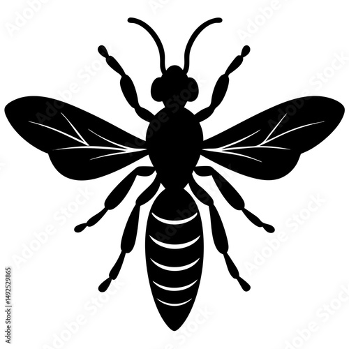Black and White Silhouette of a Bee with Wings