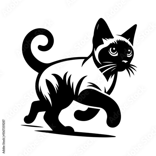 Black and white silhouette vector of a cat on white background