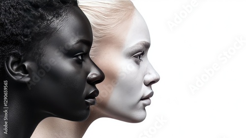 Black and White silhouettes blending into each other, visualizing racial integration and equality.