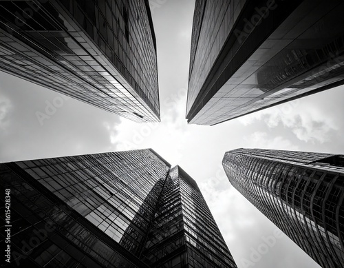 Black and White Skyscraper Buildings from Low Angle – Urban Geometry