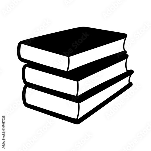 Black and white stack of three books with thick outline illustration