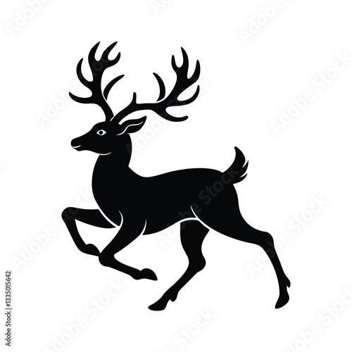 Black and White Stag Deer with Antlers Icon for Nature, Wildlife, and Forest