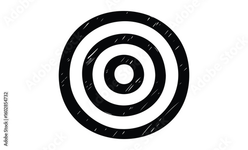 Black and white target symbol with concentric circles on white background. Vector retro hand drawn illustration.