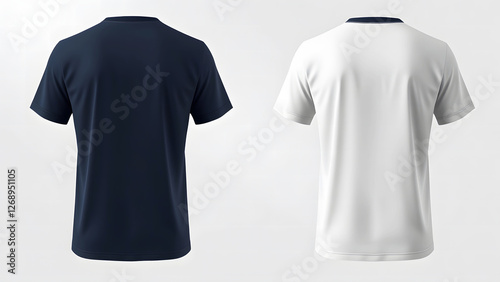 Black and white T-shirts displayed on plain white background, ideal for showcasing clothing designs, minimalist fashion trends, or apparel branding
