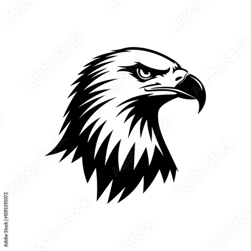 Black and white vector illustration of an eagle’s head.
