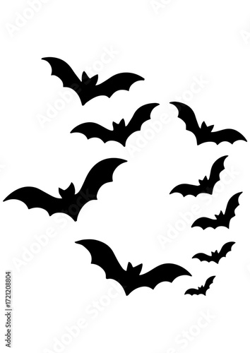 Black and white vector of bat silhouettes. Simple Halloween design for engrave, laser engrave, prints and creative spooky projects