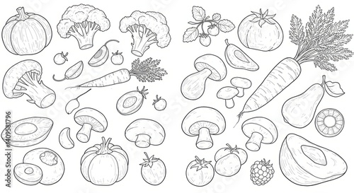Black And White Vegetable Line Art Illustration On White Background
