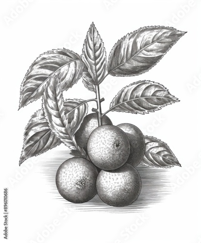 Black and white Vintage engraved art of a longan isolated on white background, ink sketch illustration, simple vector art design, highly detailed line art, high contrasty.