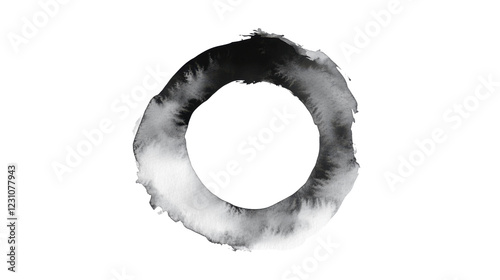 Black and white watercolor circle on transparent background