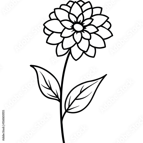 Black and White Zinnia Blossom Stem Two Leaves flower
