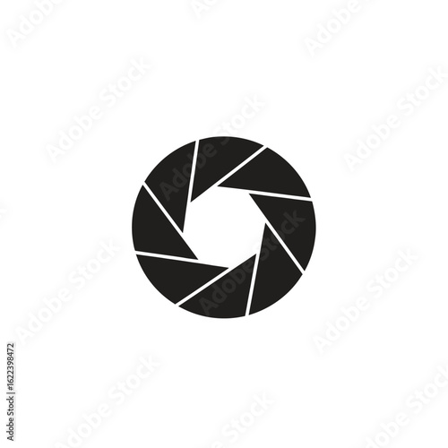 Black aperture icon isolated on white background, minimalist design for photography concept
