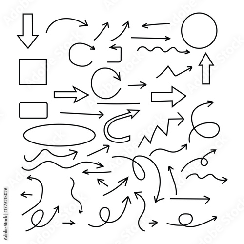 Black arrows, circles icon set vector. straight, curved, looped, zigzag, and dashed arrows symbol. vector illustration.