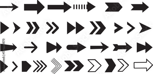 Black Arrows Icon Set – Flat Direction Pointers for Web Design, Vector Arrow Signs Collection