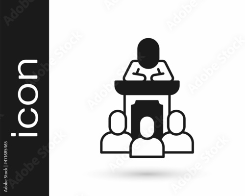 Black Auction auctioneer sells icon isolated on white background. Auction business, bid and sale. Vector