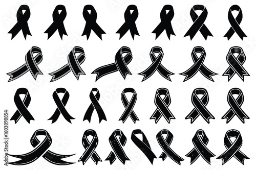 Black Awareness Ribbon Vector EPS Set | Memorial & Mourning Symbols | Editable Grief Clipart