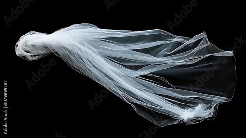 Black background, an white bridal veil, flying, cut out,