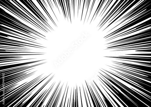 Black background with cartoon-like radiation and concentrated lines (size ratio 3:4)
