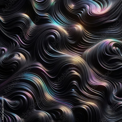 Black Background with Iridescent Neon Highlights. Undulations and Swirls create a Luxury Surface Texture.