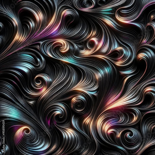 Black Background with Iridescent Neon Highlights. Undulations and Swirls create a Luxury Surface Texture.